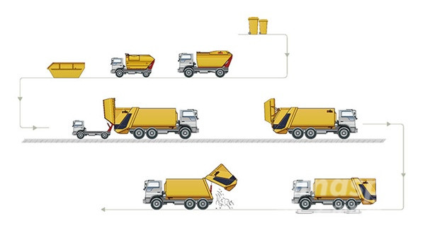 再由 海沃MEGA垃圾壓縮車運輸?shù)浇K端垃圾處理場。有效縮短小型垃圾車的行駛里程,同時降低了垃圾處理成本,經(jīng)濟環(huán)保。