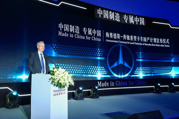 “戴姆勒卡車的戰(zhàn)略目標(biāo)是在全球領(lǐng)先行業(yè),為來自世界各地的客戶創(chuàng)造價值。作為全球最大的卡車市場,中國市場對我們舉足輕重,且已成為我們未來業(yè)務(wù)增長的最重要市場。為充分發(fā)揮中國市場的潛力,我們決定在中國生產(chǎn)專屬中國的梅賽德斯-奔馳重型牽引車。”戴姆勒卡車股份公司首席執(zhí)行官杜墨(Martin Daum)表示:“我們確信,今日之舉是在合適的時間點、為正確的市場采取的恰當(dāng)?shù)膽?zhàn)略舉措。”