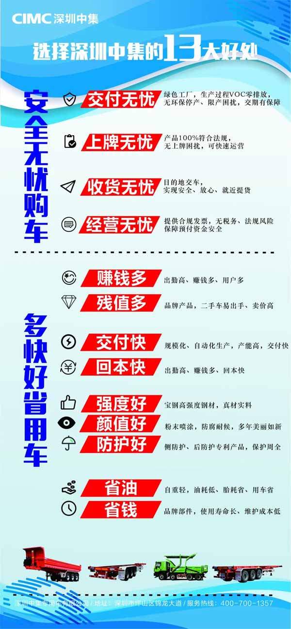 而對于專用車領(lǐng)導(dǎo)品牌來說,在鋼材漲價的情況下凸顯了運(yùn)營優(yōu)勢。作為華南區(qū)域最大的半掛車生產(chǎn)基地,依托中集集團(tuán)的供應(yīng)鏈優(yōu)勢,深圳中集專用車集中采購質(zhì)量和效率優(yōu)勢明顯,一定程度上緩沖了鋼材價格對于用戶購車成本的影響。目前深圳中集專用車原材料充足,骨架車、自卸半掛車、渣土車等主銷車型目前均正常接單。