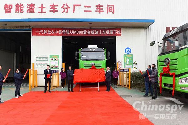 春風至,百業(yè)興,2022年2月22日,一汽解放&中集華駿新J6L城建渣土自卸車批量下線儀式在駐馬店中集華駿自卸車工廠順利舉行!一汽解放自卸品系高級經(jīng)理趙曉光、一汽解放汽車銷售有限公司自卸銷售室主任倪斌斌一行,以及中集華駿自卸車工廠總經(jīng)理郭金鎖攜相關(guān)部門領(lǐng)導、員工代表參加了此次下線儀式。