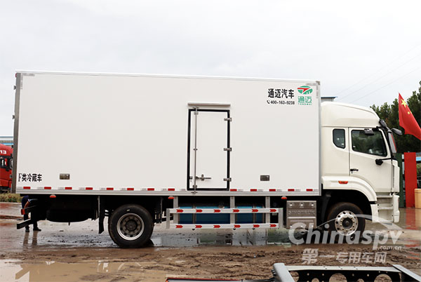 “通邁冷藏廂體采用行業(yè)主流的‘三明治’板粘工藝和玻璃纖維加強全木廂體框架結(jié)構(gòu),通邁冷藏車內(nèi)外蒙皮為整張預(yù)成型玻璃鋼板,表面潔白光滑,玻璃鋼板蒙皮導(dǎo)熱系數(shù)遠遠小于金屬蒙皮等材料,是冷藏車目前最優(yōu)良蒙皮材料。”通邁冷藏車總經(jīng)理胡守鵬透露,通邁冷藏作為國家公告內(nèi)定點生產(chǎn)冷藏車的專用車企業(yè),致力于打造更安全的冷藏車,讓卡友更賺錢。