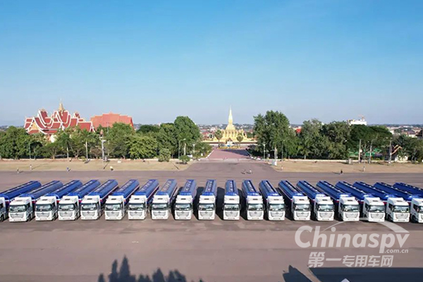 數(shù)十輛搭載??祫?dòng)力的半掛油罐車和牽引車即將交付老撾客戶