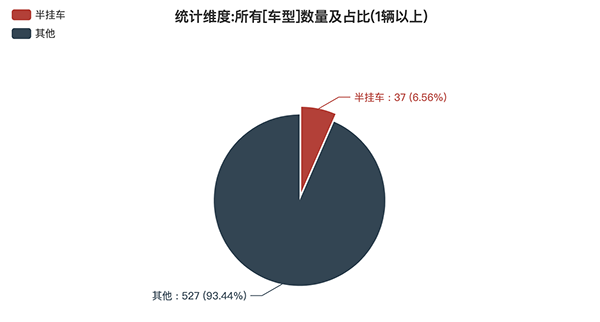 第361批新車產(chǎn)品公示中的564輛產(chǎn)品中,半掛車(37輛,占比6.56%)。