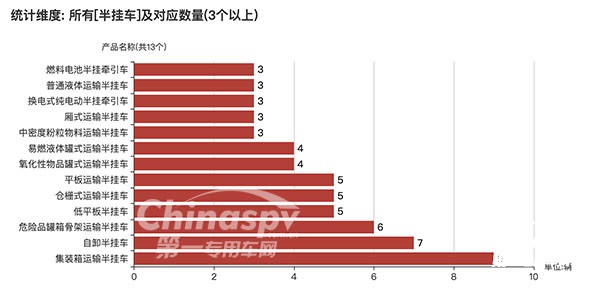 【數(shù)量在3臺以上的半掛車車型及數(shù)量】