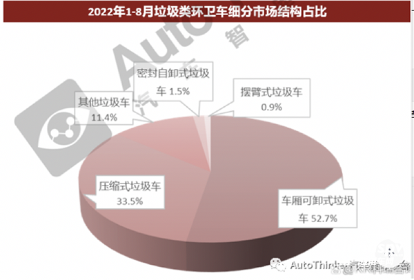 截圖2,2022年1-8月各類(lèi)垃圾車(chē)市場(chǎng)占比(來(lái)源:汽車(chē)智庫(kù))