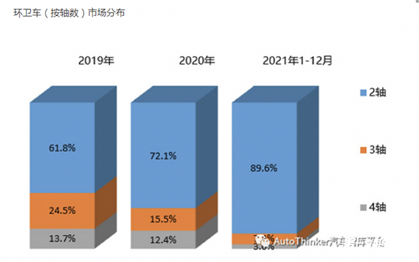截圖3,近年各種軸數(shù)環(huán)衛(wèi)車(chē)銷(xiāo)量占比(來(lái)源:汽車(chē)智庫(kù))