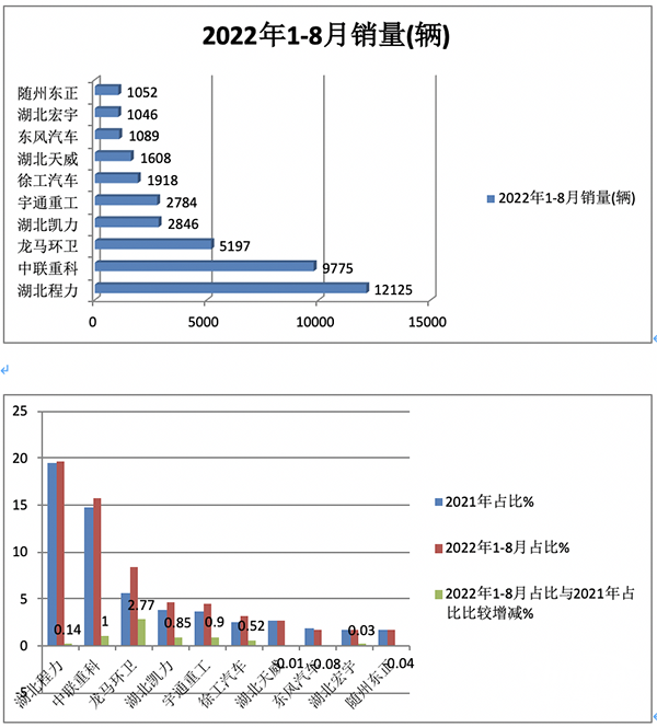 ---從企業(yè)具體表現(xiàn)看,湖北程力奪冠,中聯(lián)重科、龍馬環(huán)衛(wèi)居第二、且龍馬環(huán)衛(wèi)車(chē)占比比2021年增加最多。