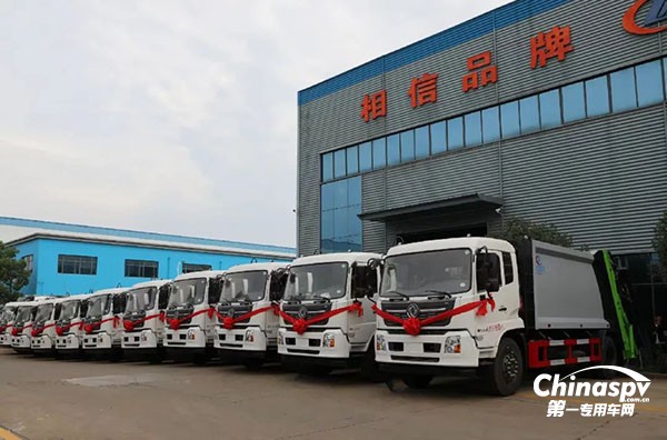 繼而,程力集團(tuán)環(huán)衛(wèi)二直屬?gòu)S生產(chǎn)的18噸壓縮式垃圾車下線,東風(fēng)商用車專用車底盤部攜手程力集團(tuán)再次向客戶批量交付15臺(tái)。