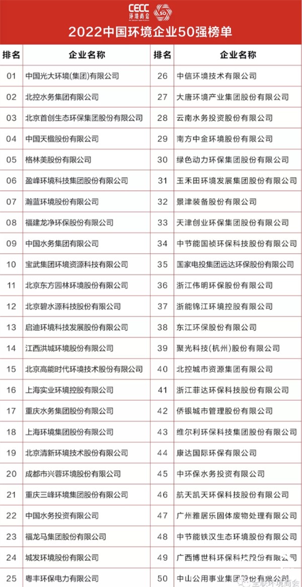 據(jù)了解,2022中國(guó)環(huán)境企業(yè)50強(qiáng)榜單以企業(yè)申報(bào)為基礎(chǔ),以公正公開(kāi)為原則,以真實(shí)數(shù)據(jù)為依據(jù),結(jié)合上規(guī)模環(huán)境企業(yè)調(diào)研,按照2021年度營(yíng)業(yè)收入總額降序排列產(chǎn)生。