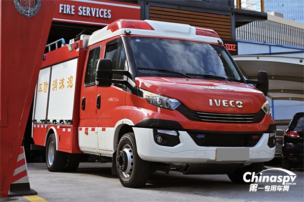 Daily底盤改裝的消防車為永強(qiáng)PM20輕型泡沫消防車,是永強(qiáng)2噸級別泡沫消防車?yán)锏母叨塑囆?。采用依維柯70C17H底盤,即7噸170馬力的Daily,搭載依維柯HI MATIC自動變速箱。