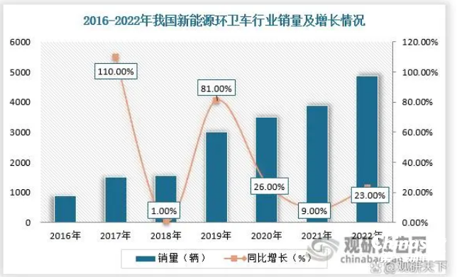 截圖1,2017年—2022年新能源環(huán)衛(wèi)車銷量同比增速(來源:觀研天下)