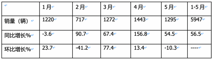三、同比增55%環(huán)比降10.3%,銷量居今年1-5月各月第二