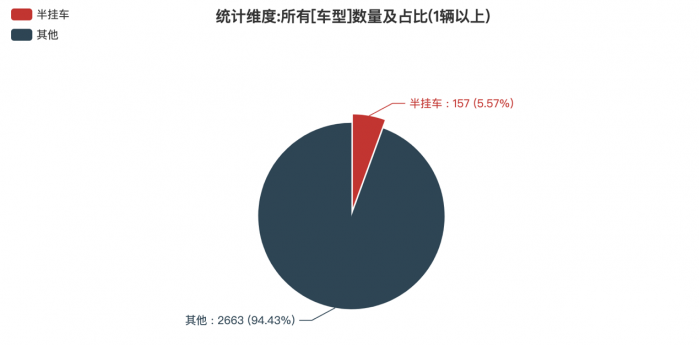 第372批新車產(chǎn)品公示中的2820輛產(chǎn)品中,半掛車(157輛,占比5.57%)。