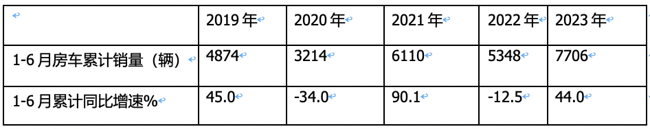 表3,根據截圖1和上牌數據,近5年1-6月房車累計銷量及同比: