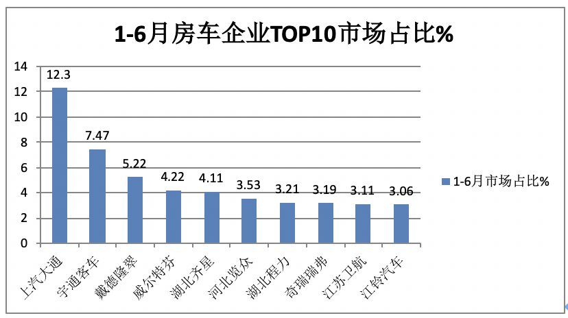 1、在2023年1-6月房車累計銷量TOP10中: