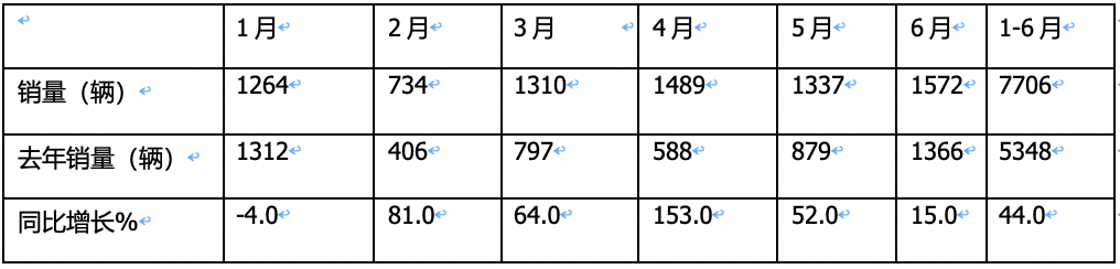 一:月度銷量同比“1降5連漲”,6月銷量創(chuàng)上半年各月新高