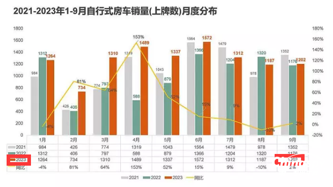 2023年1-9月房車累計銷售11407輛,同比去年1-9月的9048輛增長26%,同比增幅比今年1-8月的30%縮窄了近4個百分點。