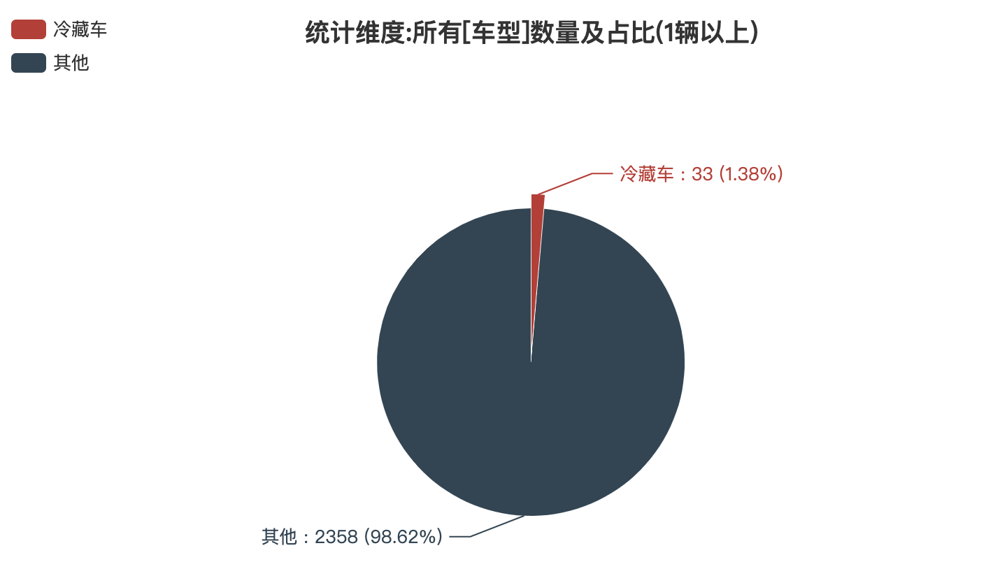 第384批新車產(chǎn)品公示中的2391輛產(chǎn)品中,冷藏車(33輛,占比1.38%)。
