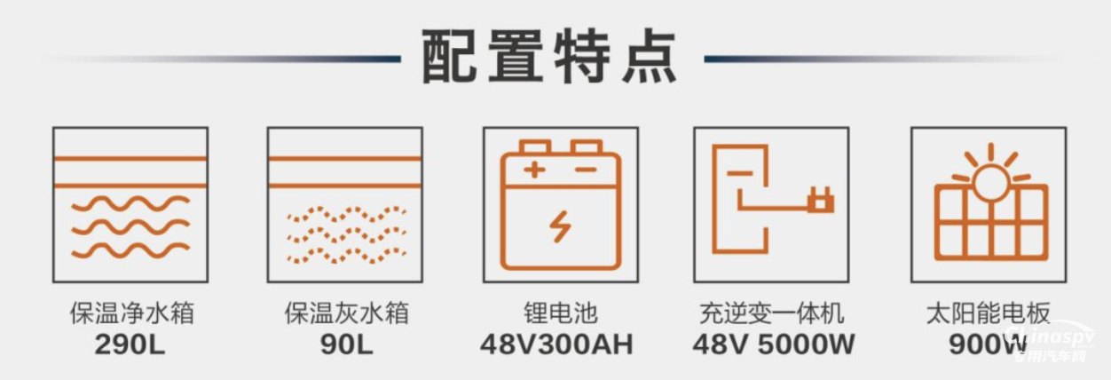 依托于車內(nèi)的中央空調(diào)管控系統(tǒng)與熱交換系統(tǒng)。供熱上,車內(nèi)首創(chuàng)雙區(qū)熱交換前后雙風(fēng)暖,實(shí)現(xiàn)了主動內(nèi)循環(huán),一方面保證了生活區(qū)與設(shè)備區(qū)熱量循環(huán),另一方面水箱內(nèi)置后,即便是環(huán)境溫度達(dá)到零下,水路也能正常進(jìn)行工作。