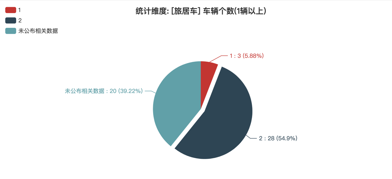 本次公告中的51款旅居車中,車型軸數(shù)情況如下:1軸(3輛,占比5.88%)、2軸(28輛,占比54.9%)、未公布相關(guān)數(shù)據(jù)(20輛,占比39.22%)[總數(shù):51]