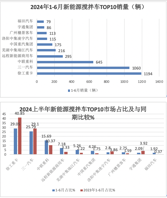 上半年新能源攪拌車:銷4110輛增117.5%,徐工\三一\中聯(lián)重科居前三,福田領(lǐng)漲