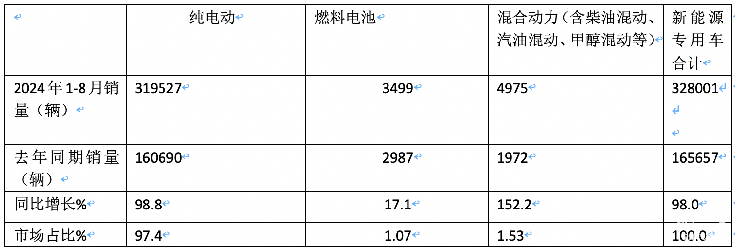 總體看,2024年1-8月我國新能源專用車市場呈現(xiàn)了強(qiáng)勁的發(fā)展勢頭。