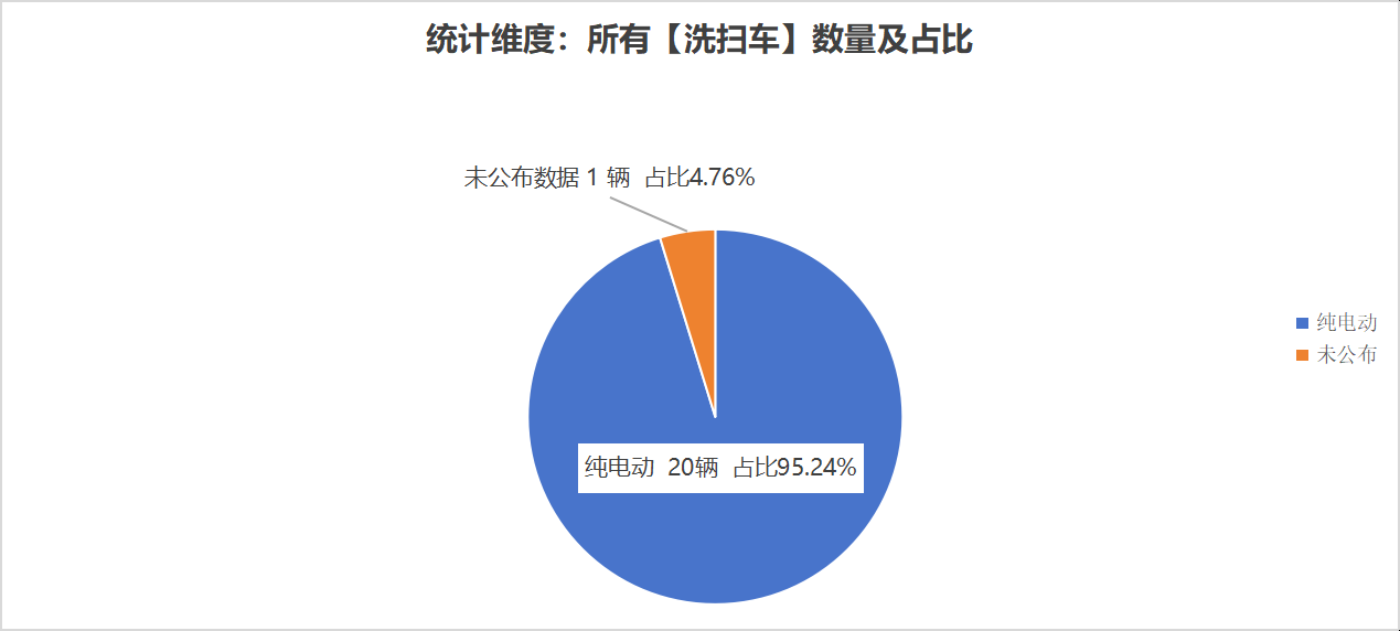 本次公告中的21款洗掃車(chē)中,純電動(dòng)洗掃車(chē)(20輛,占比95.24%)、未公布能源情況(1輛,占比4.76%)。