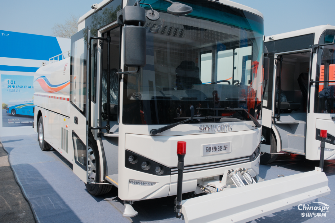 此次展會,創(chuàng)維汽車重點推出面向城市環(huán)衛(wèi)場景的高端裝備。其中,18噸高壓清洗車(低踏步)與18噸壓縮式垃圾車(低踏步)基于純電動專用底盤開發(fā),采用行業(yè)領(lǐng)先的低踏步設(shè)計,優(yōu)化人機工程學(xué)布局,顯著提升作業(yè)人員操作效率與安全系數(shù)。兩款車型搭載高密度電池系統(tǒng)與高效電驅(qū)技術(shù),單次充電續(xù)航里程超350公里,兼具零排放、長續(xù)航、低能耗、噪聲低的優(yōu)勢,可滿足城市道路深度清潔與垃圾高效轉(zhuǎn)運需求。