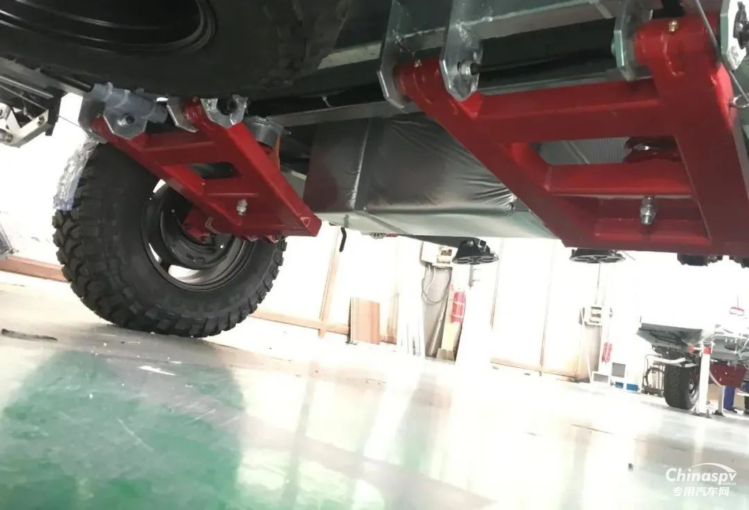 專為越野設計的底盤為獨立懸掛系統(tǒng),非承載結構,輪胎是越野輪胎,離地間隙30厘米,可有效保證穩(wěn)定性,即便遇到坑坑坎坎也能輕松自如的通過。車尾可配備備胎、工兵鏟等,備胎兩側還能外帶油箱或者脫困板,能夠?qū)崿F(xiàn)長距離的越野穿越。另外,電子剎車+駐車制動形式保證可靠的安全性。硬朗的線條,棱角分明,散發(fā)著濃郁的越野氣息。