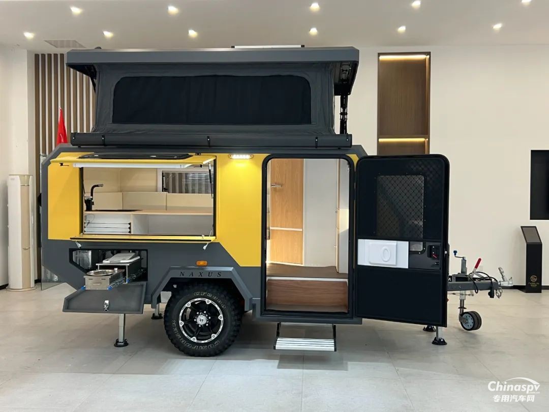 外部主要配置:澳式50 拖車連接器、重型雙輪導向輪、手動重型駐車支腿、外置超大儲物箱、手動升降頂棚、遮陽棚及抽拉高原版柴油灶(選配)等。