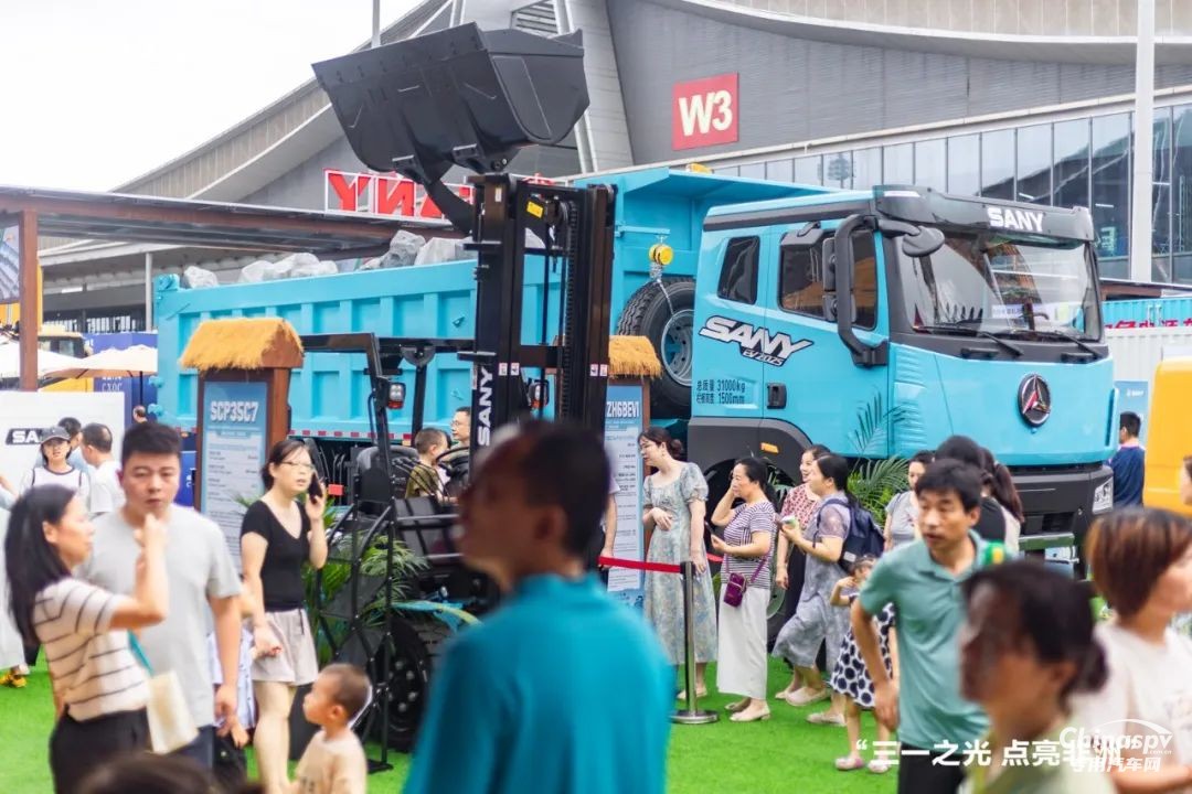 三一集團工程車輛事業(yè)部重點車型:8×4礦山砂石電動自卸車在本次展會中重磅亮相。