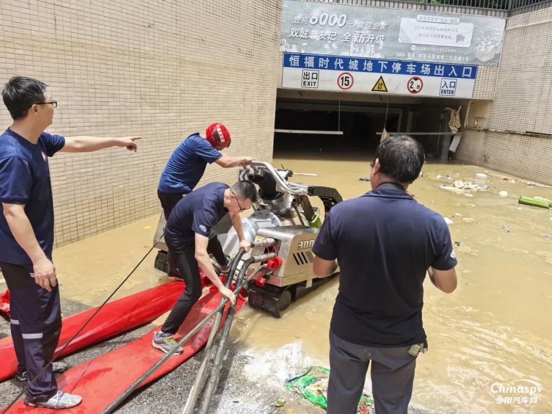 在廣東省應(yīng)急管理廳的統(tǒng)一指揮下,盈峰環(huán)境救援隊(duì)精準(zhǔn)定位至地下停車庫、商場等洪水倒灌區(qū)域進(jìn)行全面作業(yè),在各界救援力量的緊密配合與高效協(xié)同下,洪澇危機(jī)正穩(wěn)步化解。