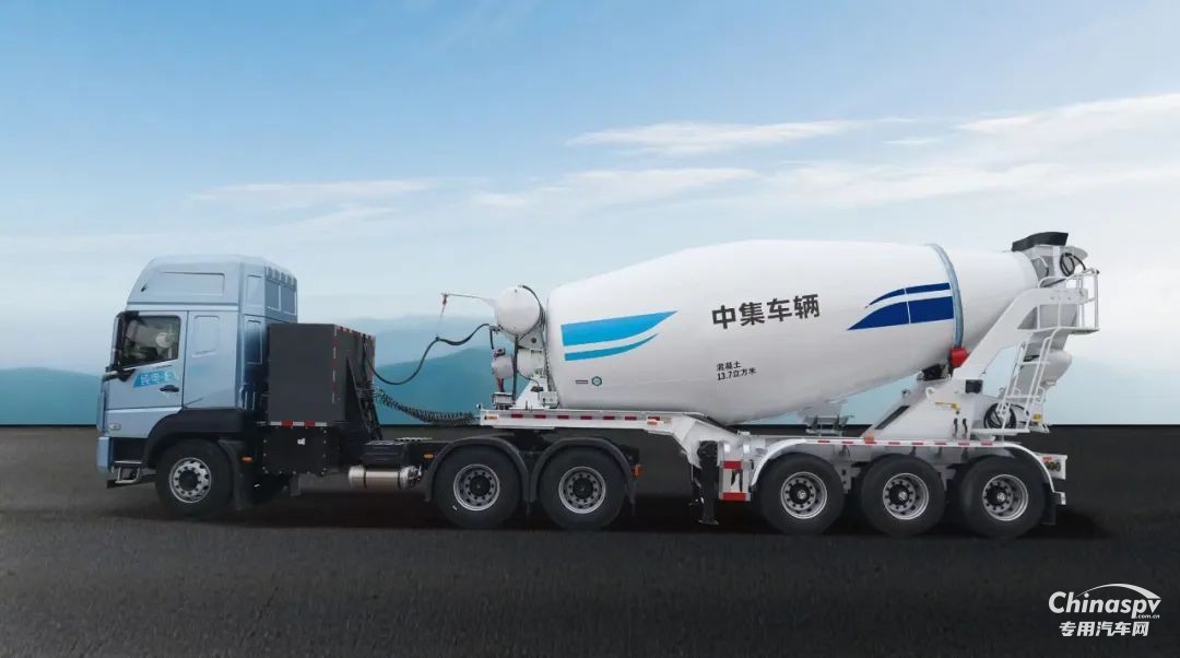 【圖為純電動(dòng)頭掛攪拌車】