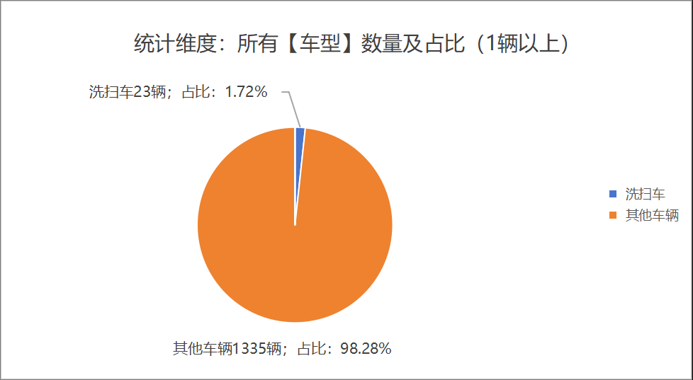 第398批新車產(chǎn)品公示中的1335輛產(chǎn)品中,洗掃車(23輛,占比1.28%)。