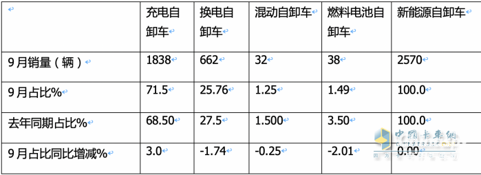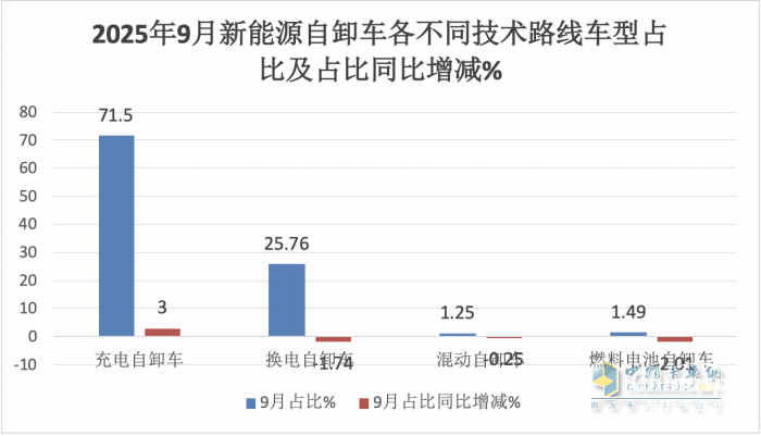 上圖表顯示,按技術(shù)路線劃分,在2025年9月各動(dòng)力新能源自卸車銷量中: