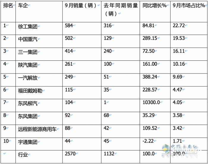 9月新能源自卸車:“金九”旺銷2570輛創(chuàng)史上新高!徐工\\重汽爭冠,東風(fēng)柳汽領(lǐng)漲