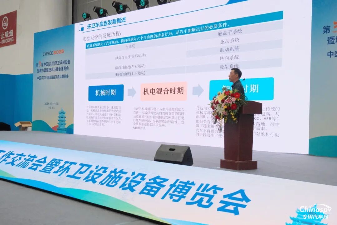 在展會(huì)主論壇上,創(chuàng)維汽車(chē)整車(chē)設(shè)計(jì)院副院長(zhǎng)、專(zhuān)用車(chē)產(chǎn)品線總監(jiān)張志紅分享了行業(yè)前瞻洞察。他指出,環(huán)衛(wèi)車(chē)底盤(pán)正經(jīng)歷從機(jī)械到智能的深刻變革,而未來(lái)智能底盤(pán)的核心,正是電動(dòng)化、集成化與智能化。這一趨勢(shì)與創(chuàng)維汽車(chē)的技術(shù)發(fā)展路徑高度契合,為我們引領(lǐng)新能源環(huán)衛(wèi)時(shí)代奠定了堅(jiān)實(shí)的核心基礎(chǔ)。