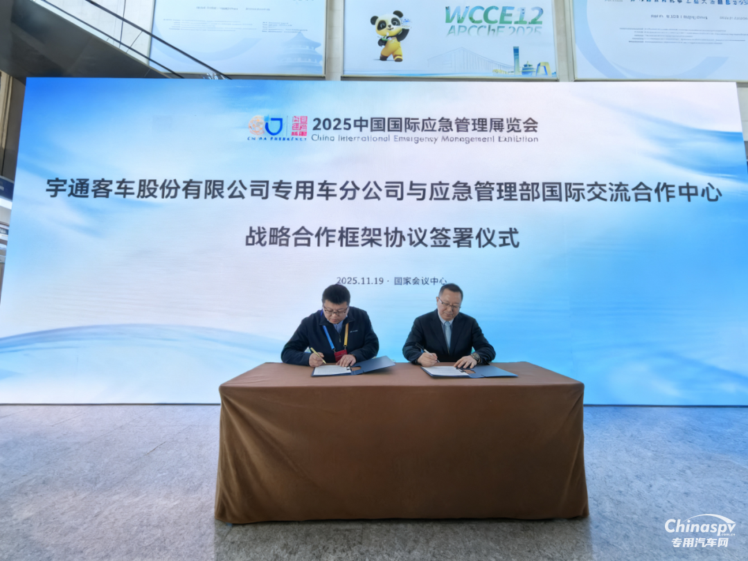 2025年11月19日,宇通客車股份有限公司專用車分公司(以下簡稱宇通專用車)與應急管理部國際交流合作中心在北京國家會議中心正式簽署戰(zhàn)略合作協(xié)議。雙方代表共同簽署了戰(zhàn)略合作框架協(xié)議,正式開啟了雙方深度合作新篇章。