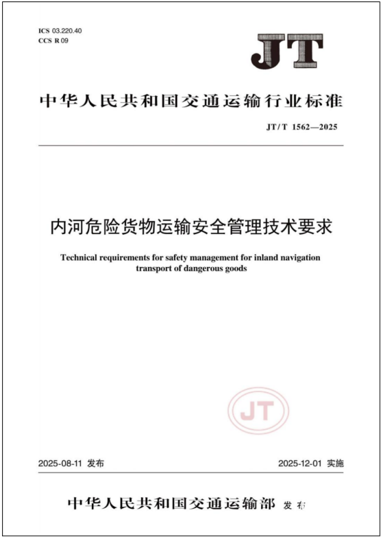 為進(jìn)一步加強(qiáng)內(nèi)河危險(xiǎn)貨物運(yùn)輸安全管理,《內(nèi)河危險(xiǎn)貨物運(yùn)輸安全管理技術(shù)要求》(JT/T 1562-2025)(以下簡(jiǎn)稱《標(biāo)準(zhǔn)》)將于2025年12月1日正式實(shí)施。