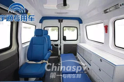 ZK5037XJH型救護(hù)車醫(yī)護(hù)倉(cāng)內(nèi)高達(dá)到1.7米,內(nèi)飾均采用高分子環(huán)保材料,易清潔、消毒,有效保障車內(nèi)衛(wèi)生條件,提升病人運(yùn)送過(guò)程中的安全性。宇通專用車在原基型車基礎(chǔ)上,創(chuàng)新性的將空調(diào)由后門位置移至駕駛室上方,有效增加后門處空間,人員上下車更便捷。