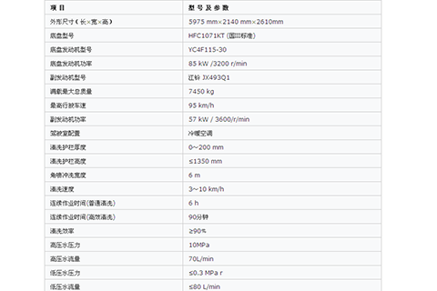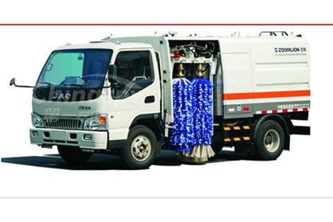 ZLJ5070THQHE3型護欄清洗車采用安徽江淮汽車股份有限公司生產(chǎn)的HFC1071KT二類汽車底盤改裝,排放達到歐Ⅲ標(biāo)準(zhǔn),副發(fā)動機采用江鈴JX493Q1柴油機,副發(fā)動機經(jīng)分動箱驅(qū)動各工作裝置。清洗護欄時,可采用噴嘴向護欄進行低壓(或高壓)噴水、四個馬達帶著滾刷旋轉(zhuǎn)并夾著護欄對護欄進行清洗作業(yè);路面沖洗時,駕駛室前端噴嘴向路面左、右兩側(cè)噴水。整機技術(shù)水平處于國內(nèi)護欄清洗車領(lǐng)先地位。