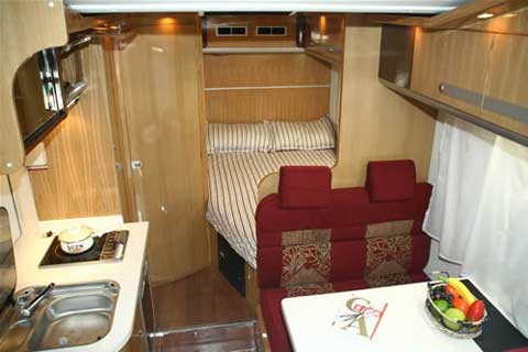 季風TC5045XLJ-C型房車在駕駛室的上方增加了一個可以供兩人住宿的頂置雙人床鋪。為更多人出門旅行提供更多方便。這樣此款C型季風的住宿人數(shù)可以達到5~6人。