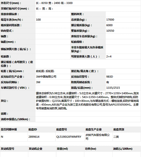公告型號(hào) ZXF5170GXFPM60/W5