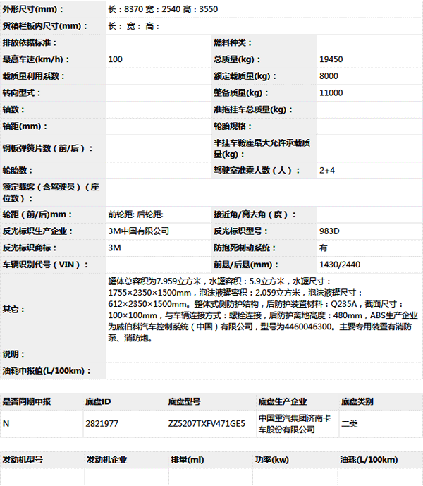 公告型號 ZXF5190GXFPM80/HT5