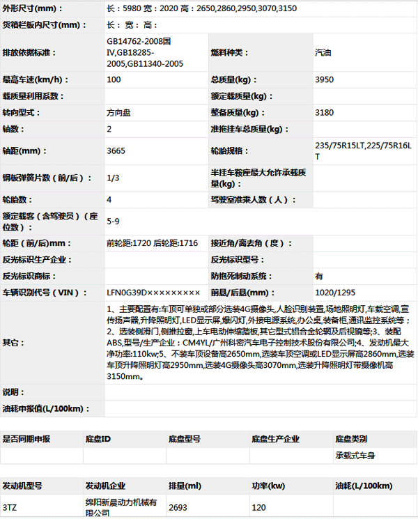 公告型號 CA5040TXUFG21