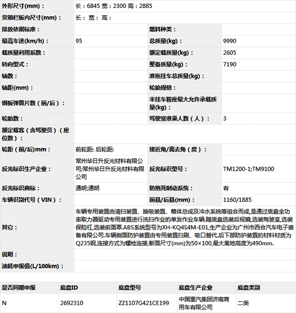 公告型號 CHD5100TXSZQE5D