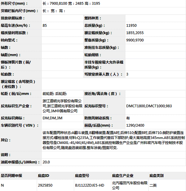 北汽福田BJ5122ZYSE5-H1壓縮式垃圾車
