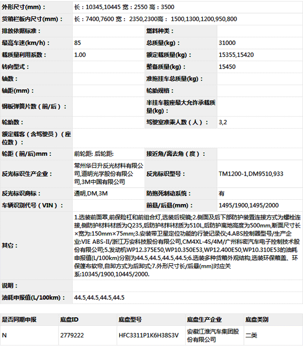 安徽江淮HFC5311ZLJP1K7H38S3V自卸式垃圾車