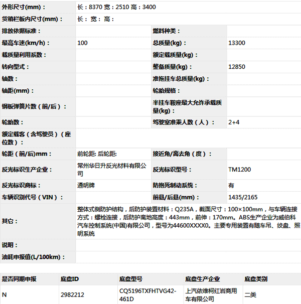 公告型號 MG5130TXFJY80/HY