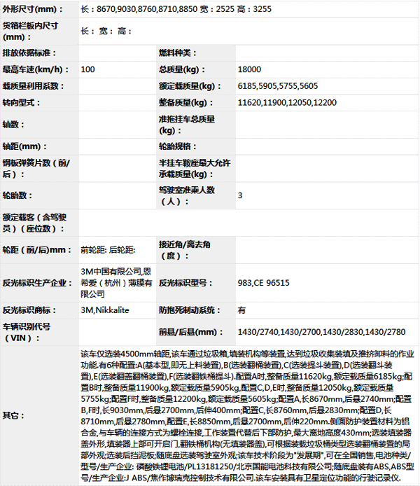 公告型號(hào) ZBH5180ZYSEQBEV